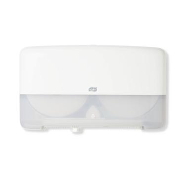 De Tork Twin Mini Jumbo dispensers (T2) hebben een extra hoge capaciteit en zijn ook kostenbesparend door de reserverolfunctie en remmende werking. Ze vragen weinig onderhoud en zijn uiterst duurzaam en robuust.\n Tork Twin Mini Jumbo toiletroldispenser T2 25.6x43.2x14.6 cm wit De Tork Twin Mini Jumbo dispensers (T2) hebben een extra hoge capaciteit en zijn ook kostenbesparend door de reserverolfunctie en remmende werking. Ze vragen weinig onderhoud en zijn uiterst duurzaam en robuust.\n