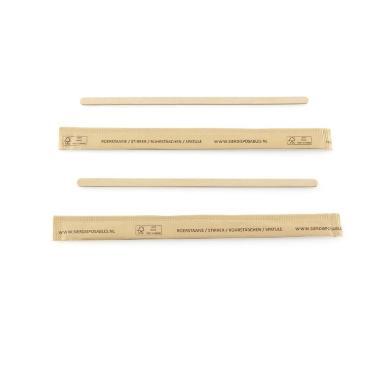 De houten roerstaafjes zijn per stuk verpakt in papier zakje en er zitten 500 roerstaafjes in een dispenserdoos. Houten roerstaafje 140x5x1.2 mm bruin individueel verpakt in dispenserbox De houten roerstaafjes zijn per stuk verpakt in papier zakje en er zitten 500 roerstaafjes in een dispenserdoos.